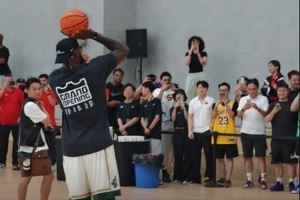 评论员段冉晒出活动现场视频,詹姆斯小试牛刀连续试投连中投篮。